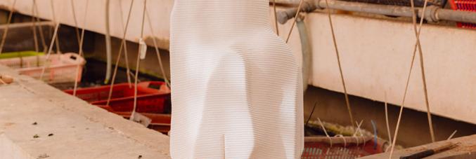 L’installazione consiste in un sistema di moduli allestitivi stampati in 3D, ispirati alle forme naturali prodotte da bio-costruttori come le ostriche e destinati, al termine della Mostra Internazionale di Architettura, a essere utilizzati come dispositivi per agevolare il ripristino della biodiversità marina a uso del centro di ricerca di Biologia marina dell’Università di Padova con sede a Chioggia.