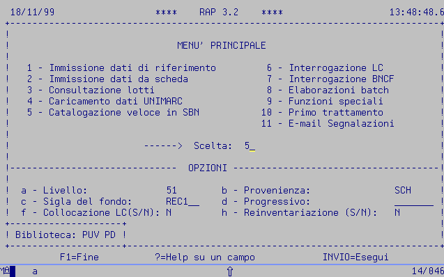 Funzione 5: Catalogazione Veloce con Lotto Unimarc